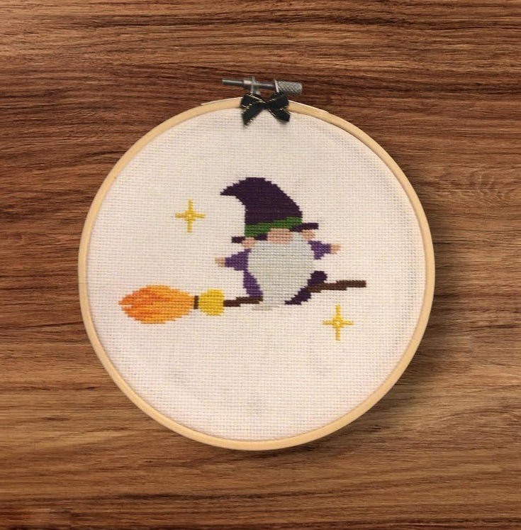Hoop X-stitched Broom Flying Gnome